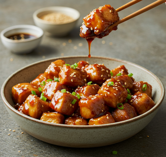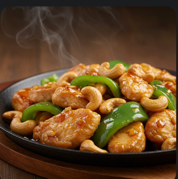 Dust the chicken with cornstarch and coat it with dry sherry and soy sauce, then set aside. Stir-fry the green